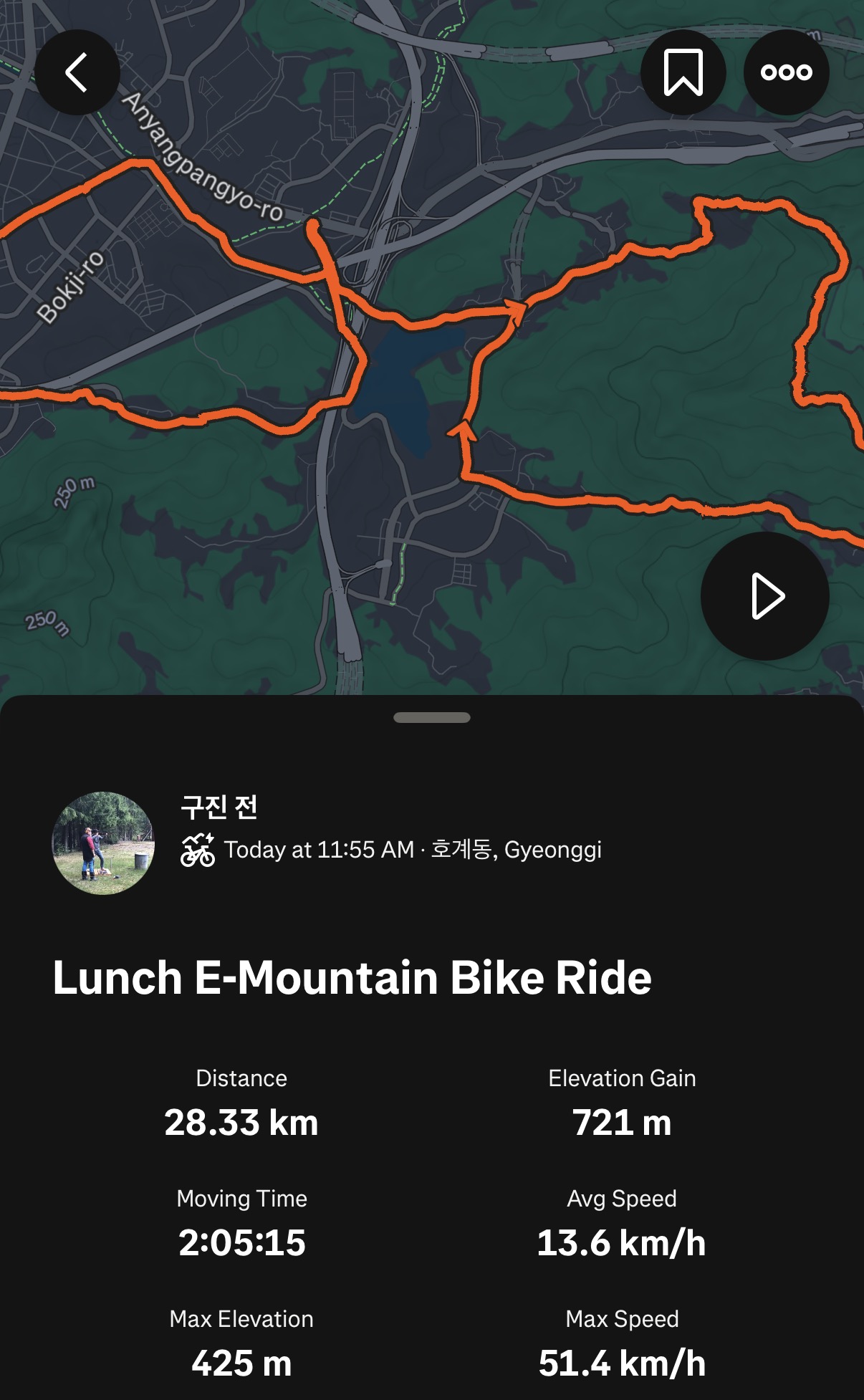 이왕 진흙으로 엉망이된 옷과 자전거 완주 목표로 다 타려고 했으나 우담산 후 응달산 가는길 초행길 라이더 인덕원 길 알려주는 바람에 라이딩 중간 종료.